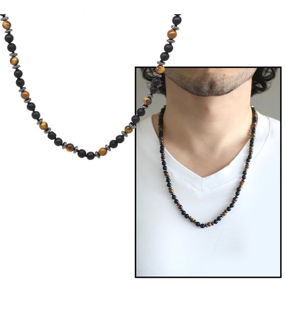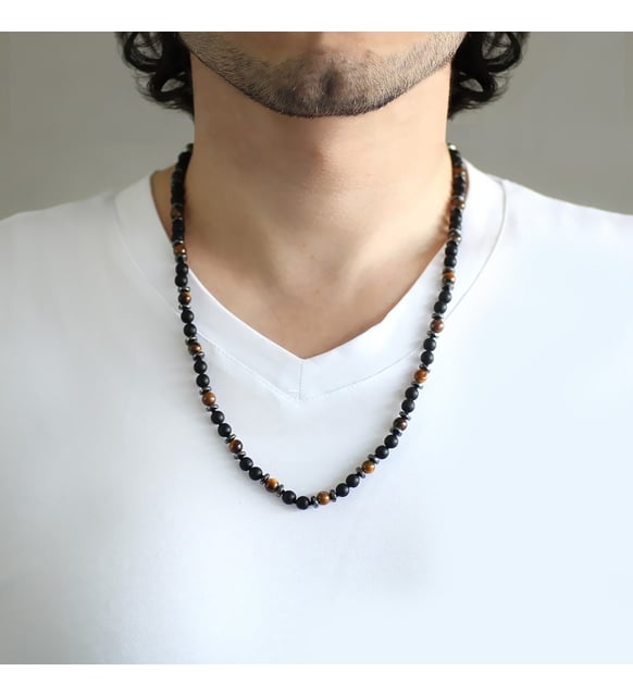 Modern erkeğin stilini tamamlayan bu şık Erkek Kolye, doğal taşların eşsiz birleşimi olan oniks ve hematit ile tasarlandı. Hem günlük kullanım hem de özel günler için mükemmel bir hediye seçeneği sunan bu kolye, zarafeti ve dayanıklılığı bir araya getiriyor.