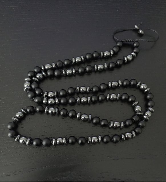 Erkek Kolye Doğaltaş Onix Hematit Makrome - Erkeğe Özel Doğumgünü Hediyesi